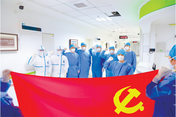 在抗擊疫情的重大斗爭中,廣大黨員挺身而出、沖鋒在前、不畏犧牲,鮮紅的黨旗在一線高高飄揚。