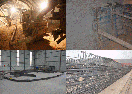 蘭州南繞城項目辦開工伊始十分注重新工藝工法在本項目中的推廣應(yīng)用。施工單位通過自主研發(fā)、引進(jìn)等方式投入使用了多臺先進(jìn)的機(jī)械設(shè)備,提升了機(jī)械化施工水平。施工單位自主研發(fā)整體自行式二襯臺車并投入施工生產(chǎn),就位速度快,解決了傳統(tǒng)二襯施工中人工勞動強(qiáng)度大、臺車加固繁瑣等問題,提高了效率和現(xiàn)場整潔度,同時也有效避免了混凝土脹模、爆模現(xiàn)象,確保了洞頂混凝土澆筑密實、提升了混凝土外觀質(zhì)量,加快隧道安全、高效、節(jié)能、環(huán)保建設(shè);自主研發(fā)自行式移動棧橋并投入施工生產(chǎn),自行縱向行走,橫向移動,靈活方便,跨度較大,能很好兼顧其他作業(yè)面施工,節(jié)約施工時間,機(jī)械化程度高,生產(chǎn)效率明顯提高,增加了安全性;隧道道面采用滑膜攤鋪機(jī)施工,一次成型,有效保障了道面厚度及平整度,自動化振搗系統(tǒng)也有效改善了道面混凝土密實度;橋梁防撞墻施工采用自行式防撞墻臺車,吊裝和作業(yè)平臺一體化,既有效確保了作業(yè)人員的安全又提升了整體施工質(zhì)量;“三背”回填引進(jìn)使用高速液壓夯實機(jī),全方位無死角集中夯實,確保壓實度符合要求;5%灰土路床填筑引進(jìn)全自動粉料撒布車、路拌機(jī)進(jìn)行施工,使混合料拌合更加均勻,自帶調(diào)節(jié)含水量的裝置實現(xiàn)了最佳含水量的有效控制,大大提高了路基路床填筑質(zhì)量,并且在拌和過程中無揚(yáng)塵,實現(xiàn)了綠色環(huán)保施工;同時引進(jìn)鋼筋籠滾焊機(jī)、數(shù)控彎曲中心等先進(jìn)設(shè)備,有效確保了鋼材加工質(zhì)量。