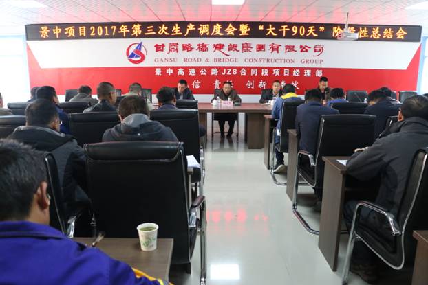 2017年11月10日,景中項目召開2017年度第三次生產(chǎn)調(diào)度會暨“大干90天”階段性總結(jié)會,項目辦全體管理人員、設(shè)計代表,中心試驗室、各監(jiān)理駐地辦、項目經(jīng)理部主要負責(zé)人參加了會議。